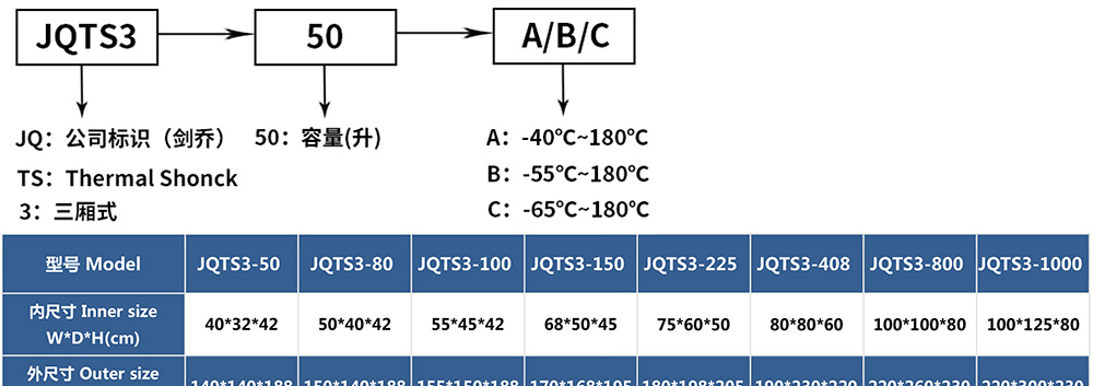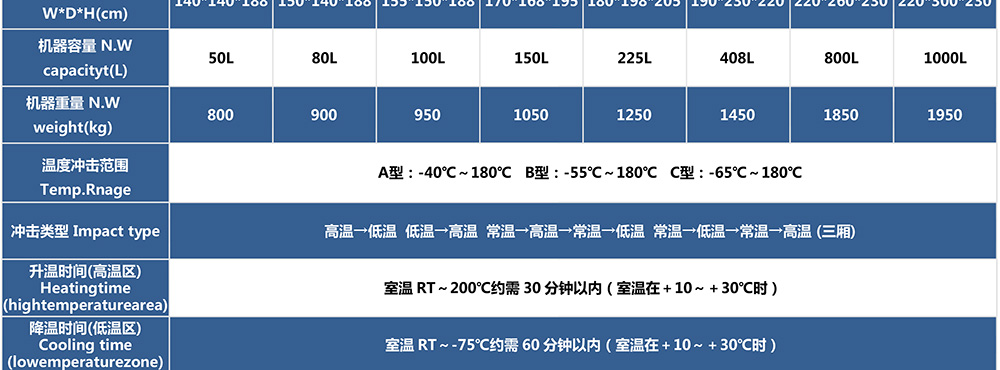 • 三廂式冷熱沖擊試驗(yàn)箱型號命名及參數(shù)表