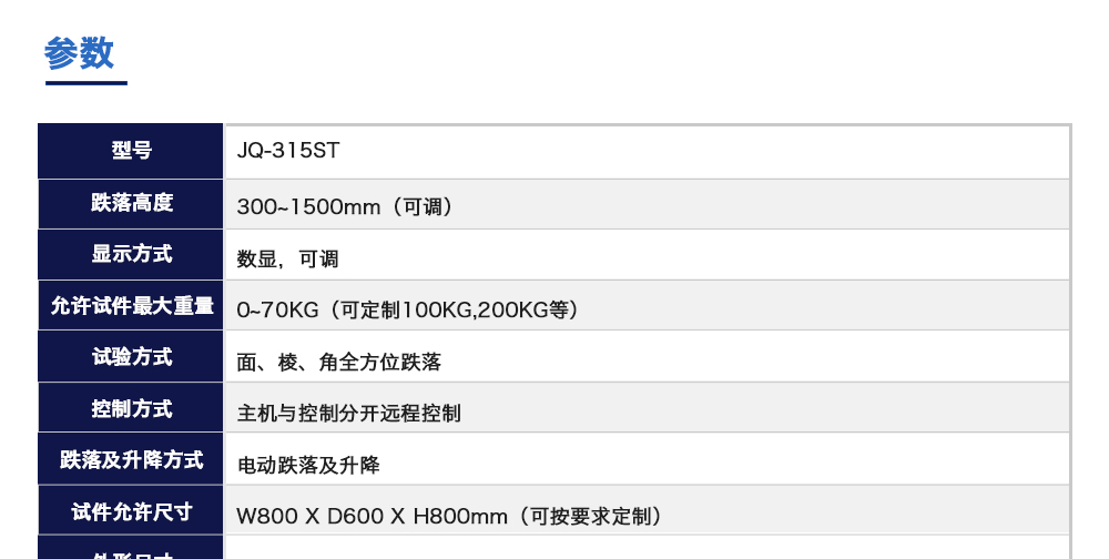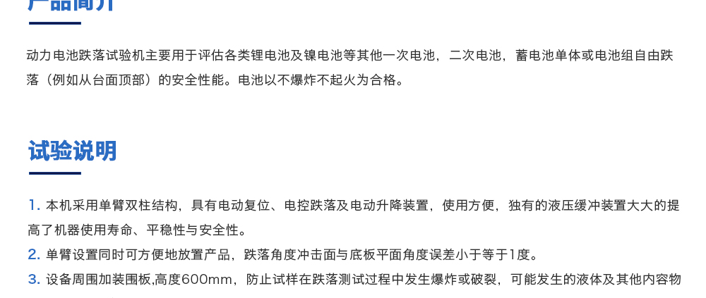 產(chǎn)品型號:JQ-315ST 品牌:劍 喬 用途:動力電池跌落試驗機(jī)主要用于評估各類鋰電池及鎳電池等其他一次電池,二次電池,蓄電池單體或電池組自由跌落(例如從臺面頂部)的安全性能。電池以不爆炸不起火為合格。咨詢熱線:13829135130